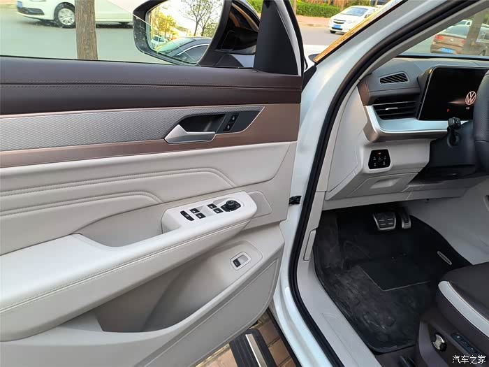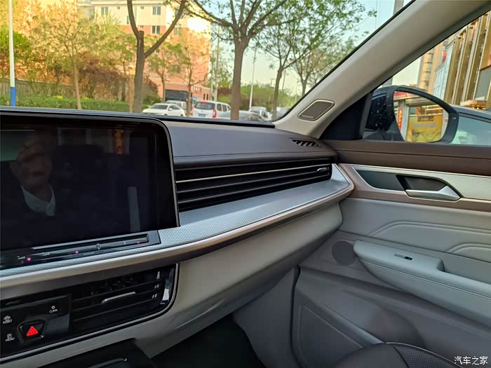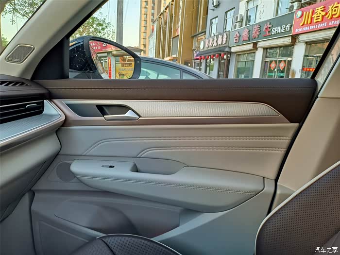 内饰干净整洁,基本能用手触及的地方都是皮革或者仿皮的材质,摸起来很有质感,看起来也很有档次