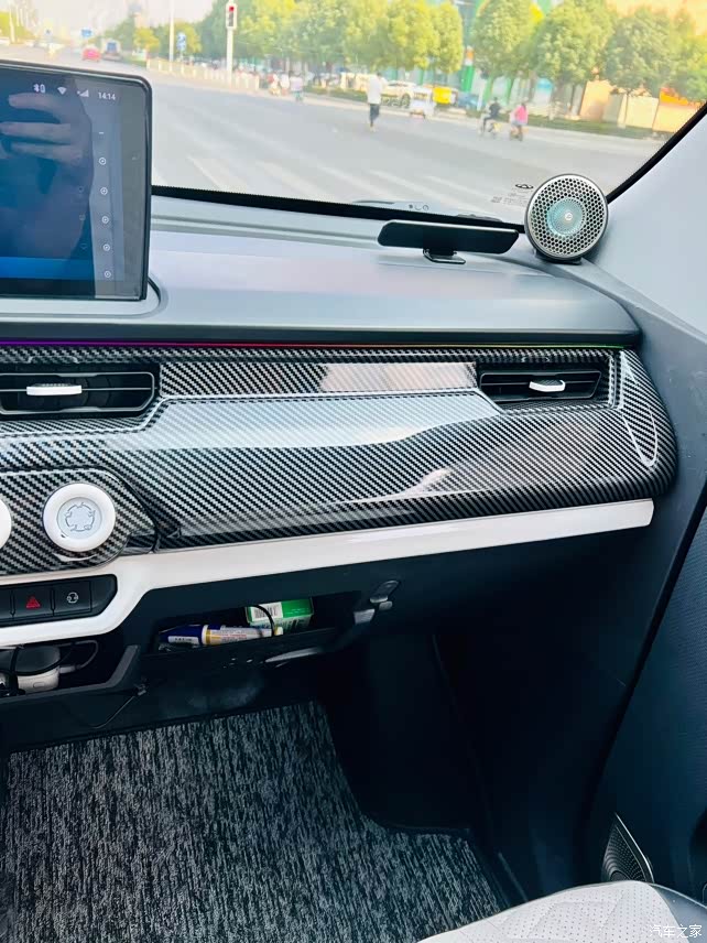 因为整车内饰材质基本就是单调塑料,颜色也很单一。翻遍购物平台的内饰装饰材料,买了很多,也浪费了很多。因为个人比较喜欢简洁黑白拼色风,所以最后留的是碳纤维色做主调,周边搭配黑白,整体生动一些。喜欢粉色的也有对应的贴皮塑料,看大家需求。