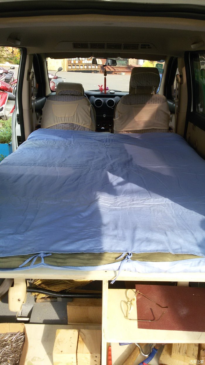 十一长假马上就要来到,准备和家里老大来一次山东半岛自驾游,十一假期沿途宾馆肯定价钱暴涨,决定改装床车,吃住在车上。怕被查到改装车辆,不动座椅,只需翻折上面铺上木板,变成简易床车。