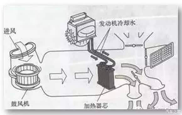 空调暖风系统是采用发动机冷却系统的冷却液的温度,通过鼓风机把暖风小水箱的热量传递到室内,也是使用热传递的原理使驾驶室内变暖, 发动机水温直接影响出风温度。