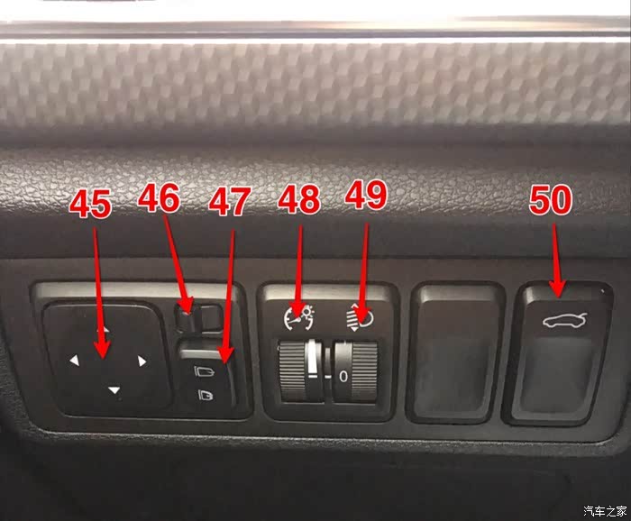 45:外后视镜电动调节按键,四向式。