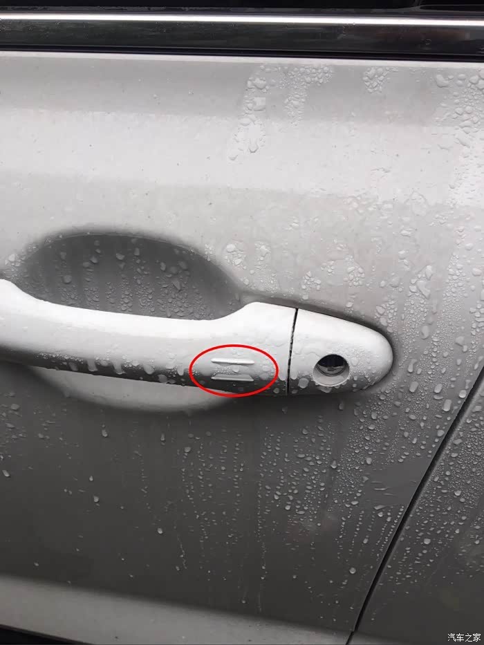 门把手内测有感应器用于无匙解锁无匙进入。所以想用触摸此处落锁的时候手不能伸到门把手内测。