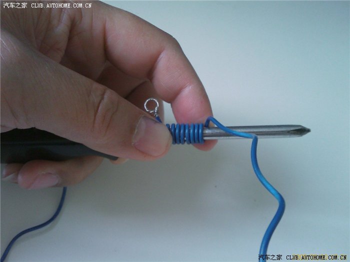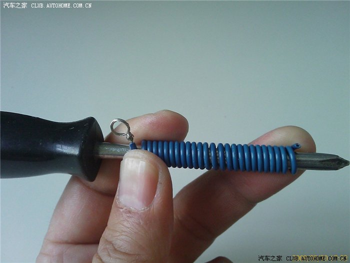 取下电线,已经变成弹簧状的螺旋管了,把一头的绝缘拨开,电线套住螺杆部分缠绕到一起