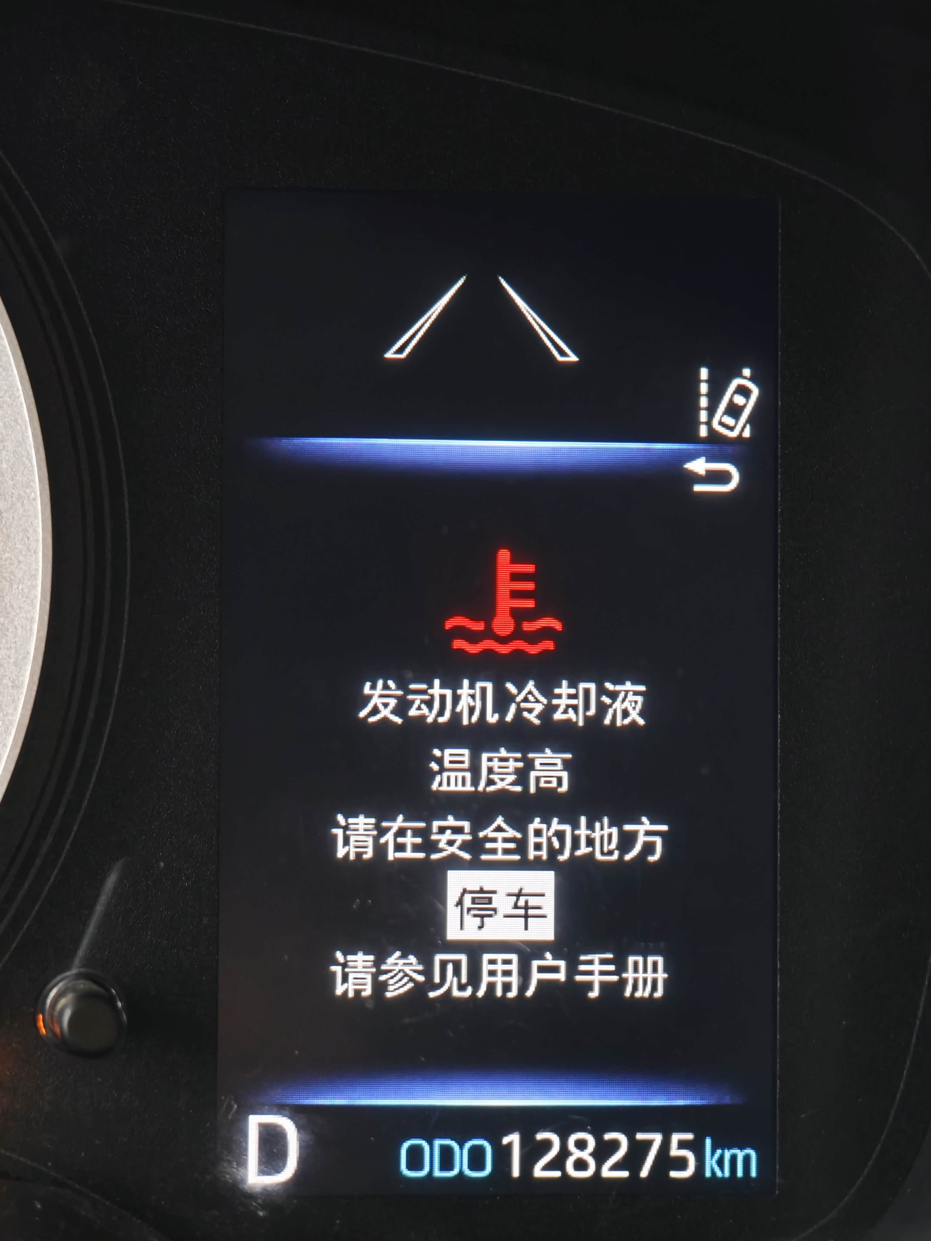 又开了一小段提示发动机冷却液温度高,让在安全地方停车。我怕爆缸,赶紧把空调关了,赶紧联系4S店,也告诉我关闭空调,较少发动机仓热量,随后开到一个阴凉处,打开发动机仓散热