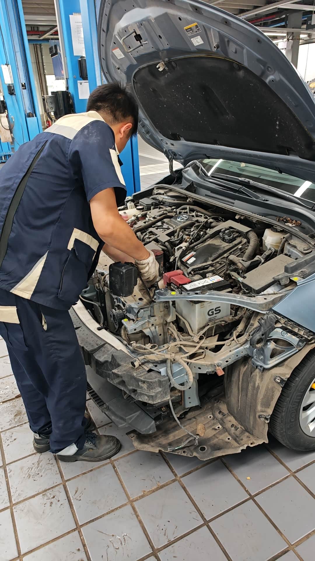 这是4S店师傅小心拆旧仪表的过程