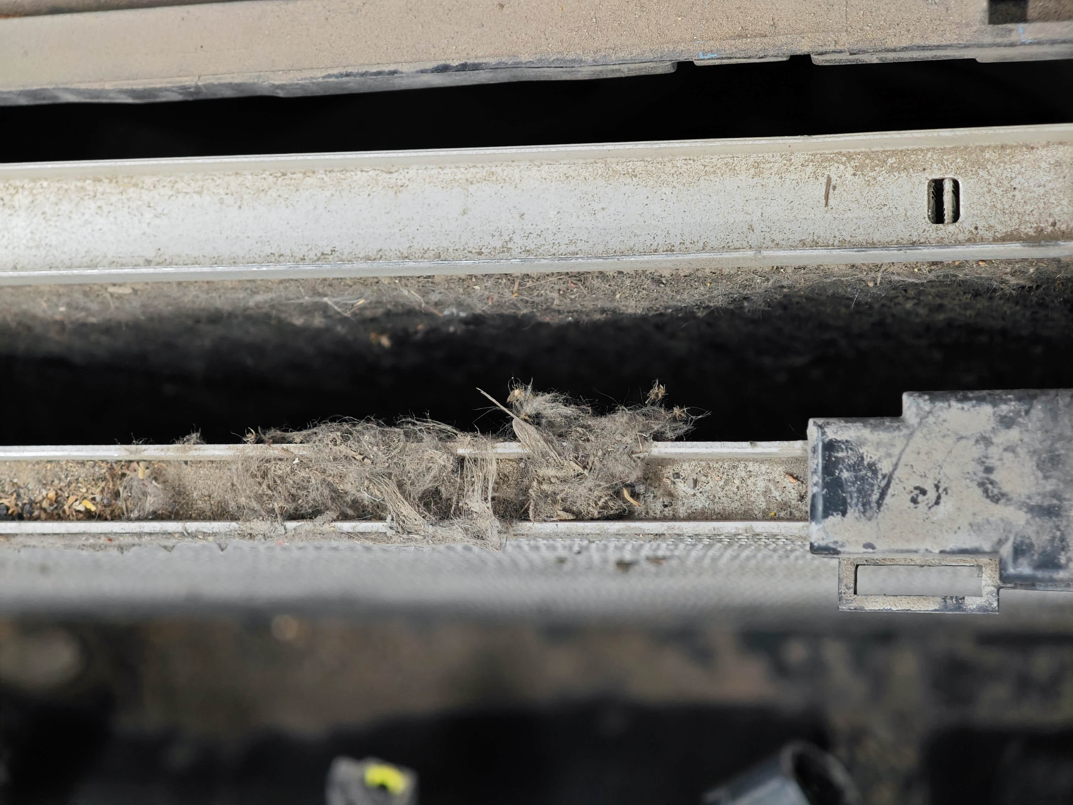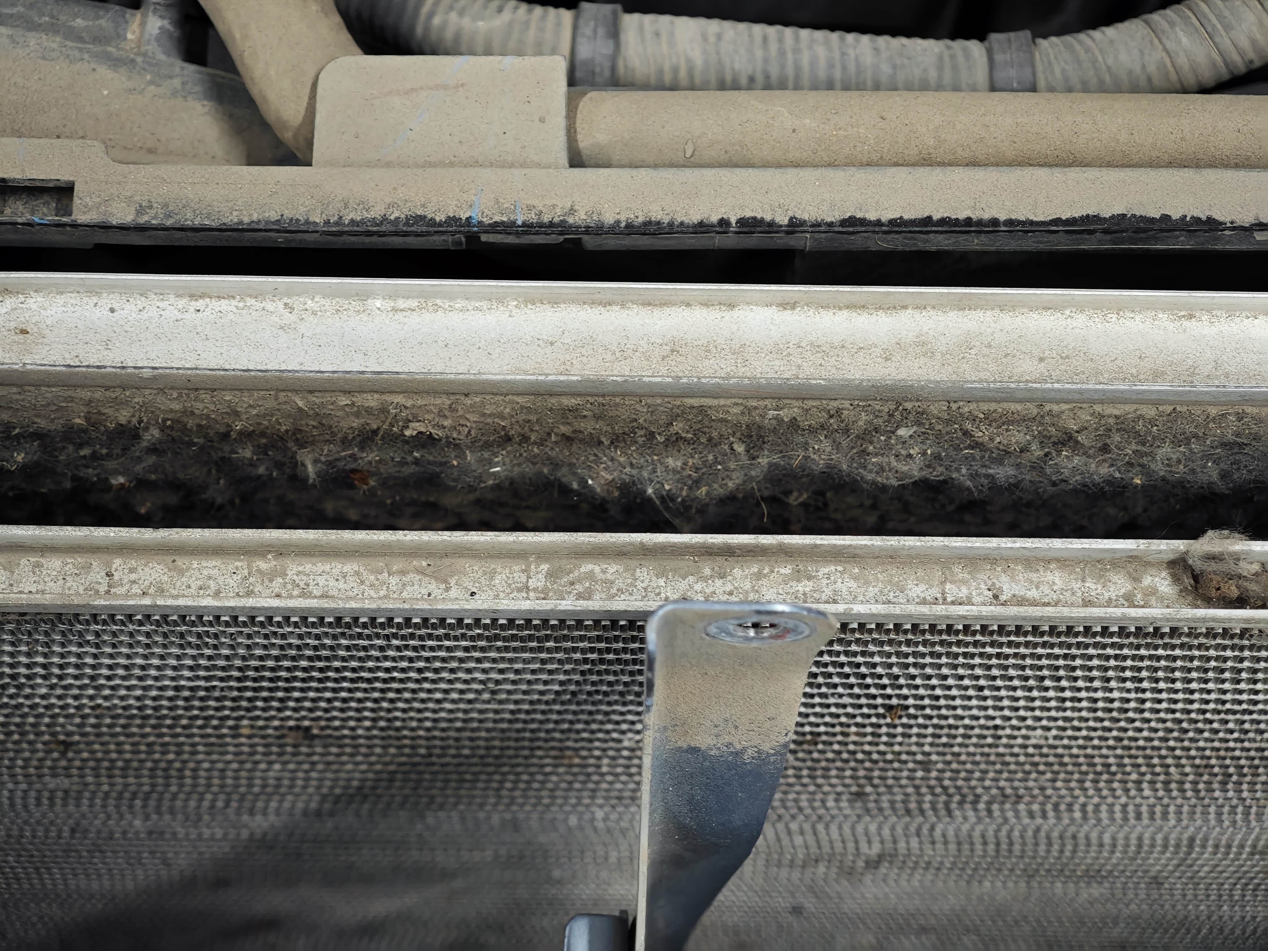 全是各种毛屑堵的。所以发动机和空调的热量全在发动机仓,导致高温报警了。后来开出去帮我吹的,把里面彻底吹干净了。