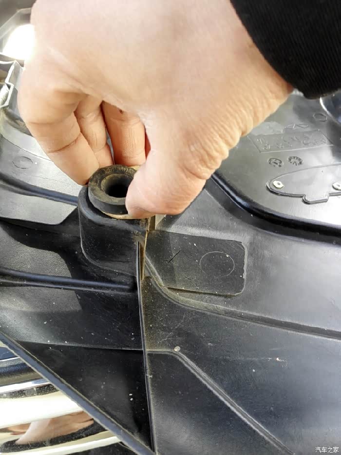 因为橡胶卡套和塑料之间有间隙,可以上下左右晃动,在发动机振动的时候,4个脚的间隙一起响,烦人的声音就来了