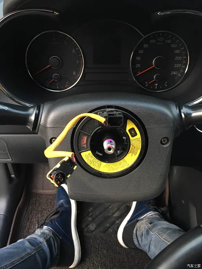 准备开拆,更换方向盘特别简单,一把平口螺丝刀,一个拆轮胎扳手,一个10个小扳手就行了!总共用了12分钟就搞定了
