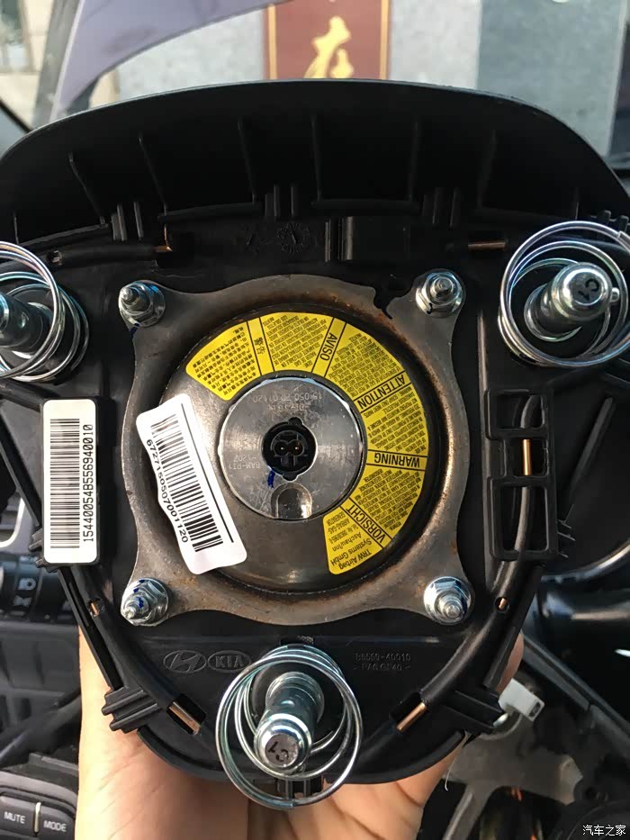 先用螺丝刀伸方向盘后面各有三个洞,轻轻一撬气囊就下来了