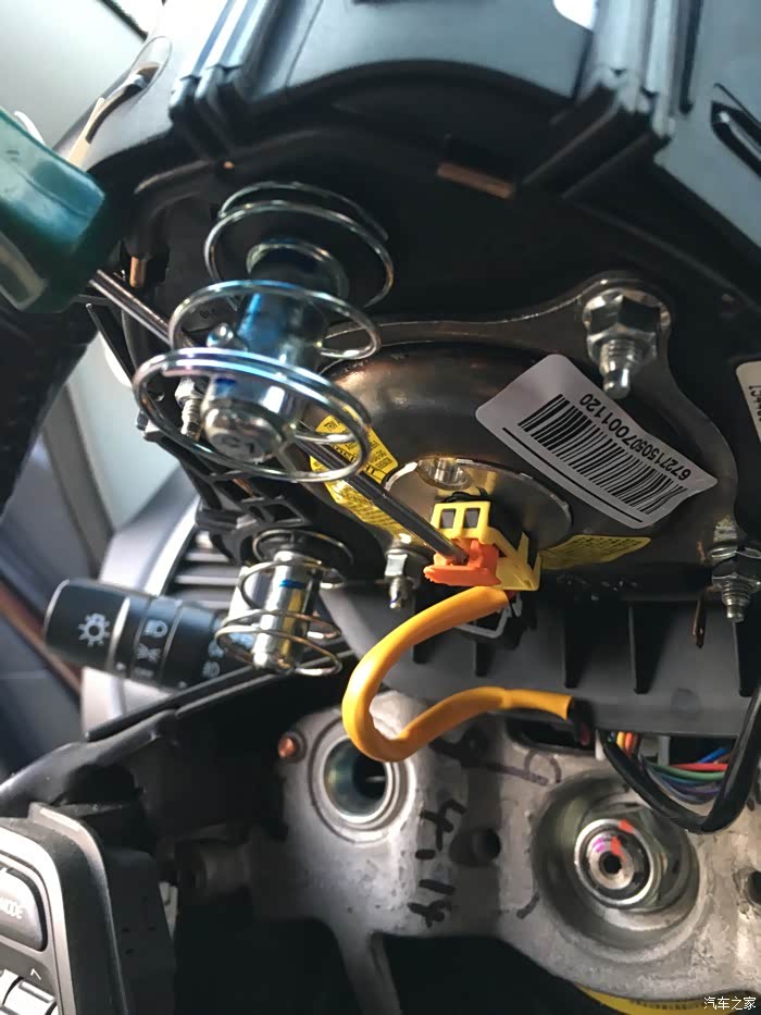 气囊下来了,用10个的小扳手拆开电瓶负极,避免气囊爆炸,专业的可以不拆