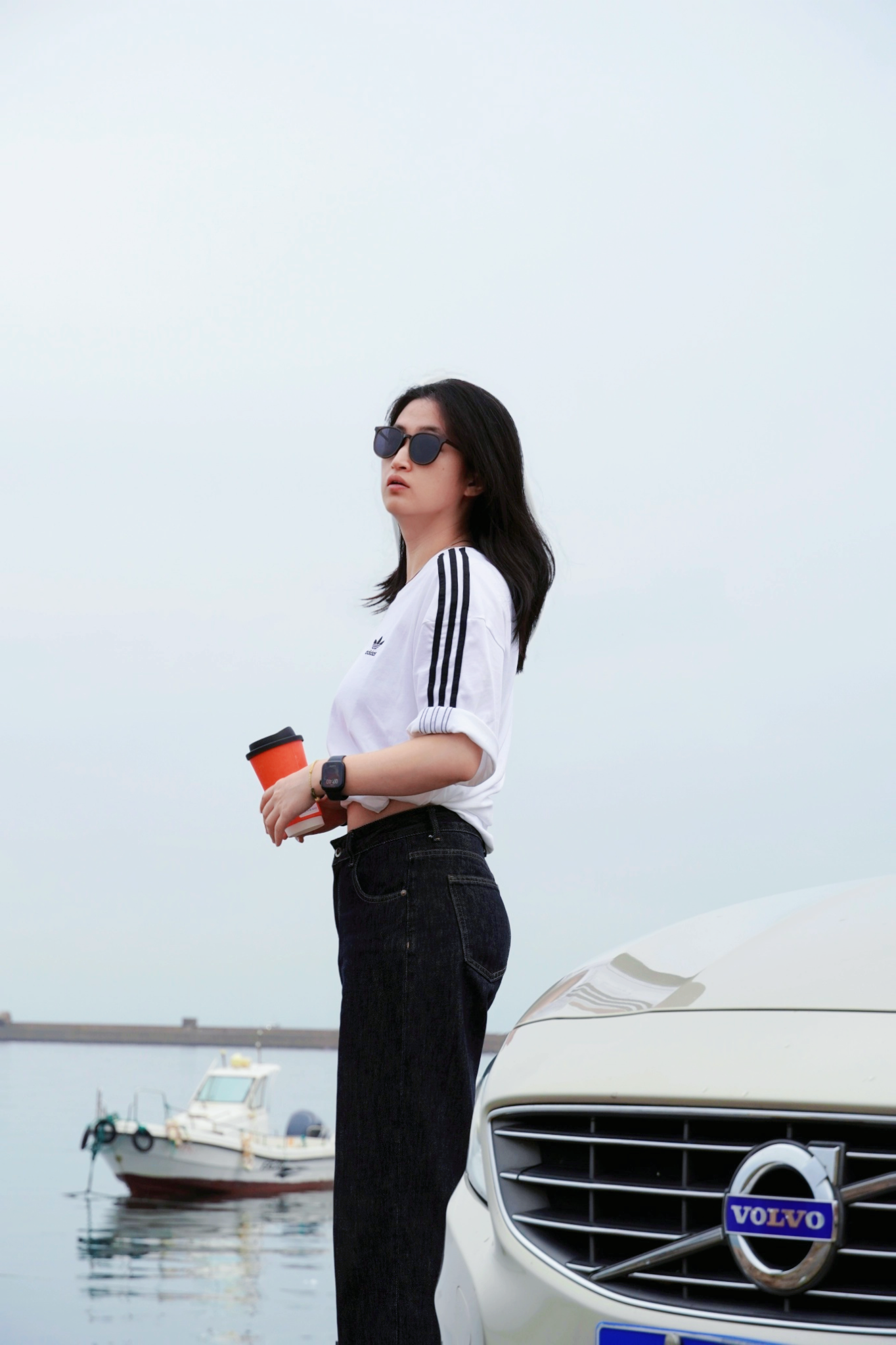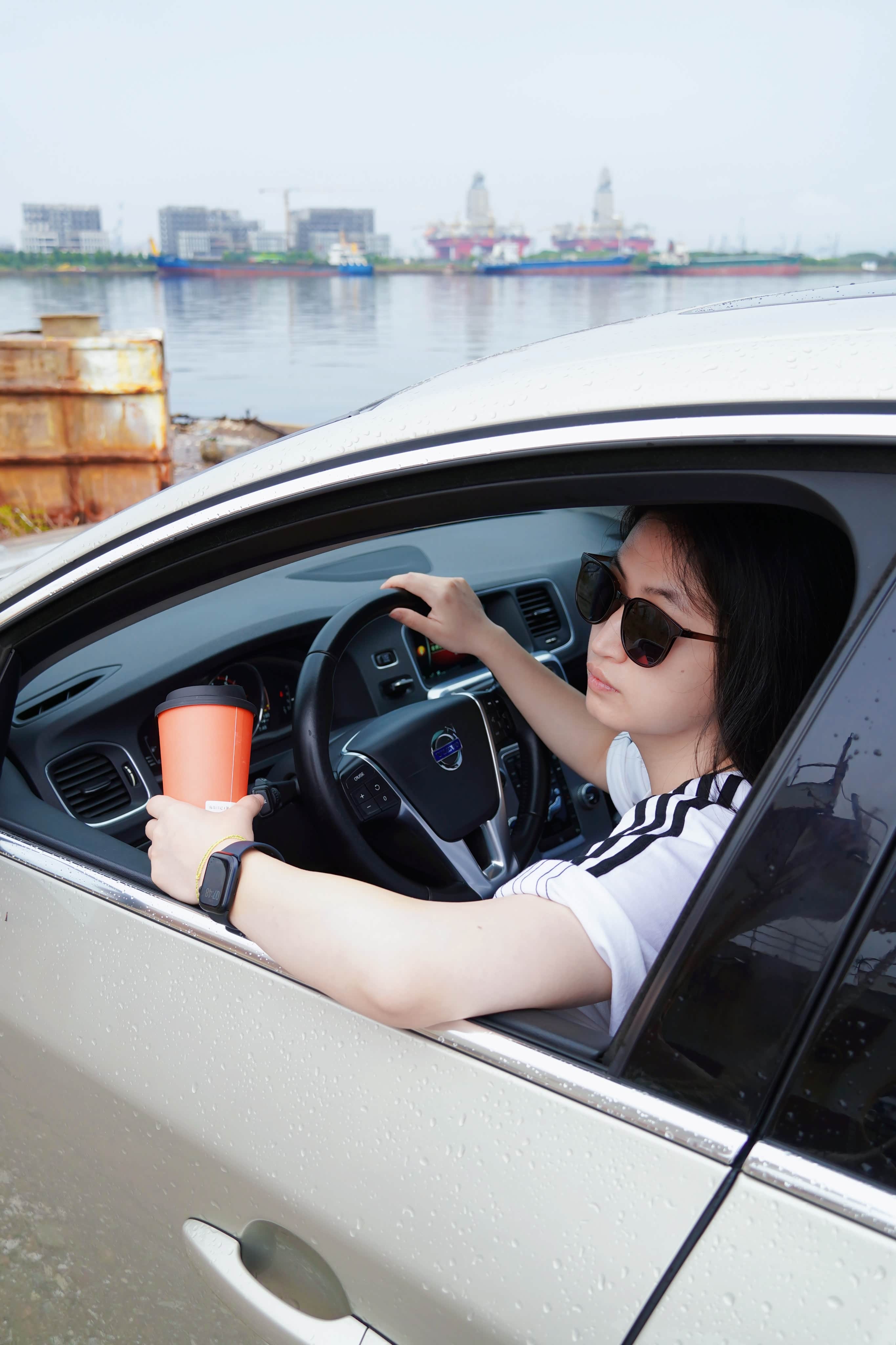 我主页中以前的媳妇儿当车模主题文章中,和大家分享过创作灵感可以是来自于一些电影镜头、明星海报等,这一组照片就应验了这样的拍摄创作思路可行,换了背景和天气环境还有人物动作甚至道具,马上就有完全不一样的感觉。有海面、有船,她手持咖啡杯子仿佛悠闲的自驾来度假。