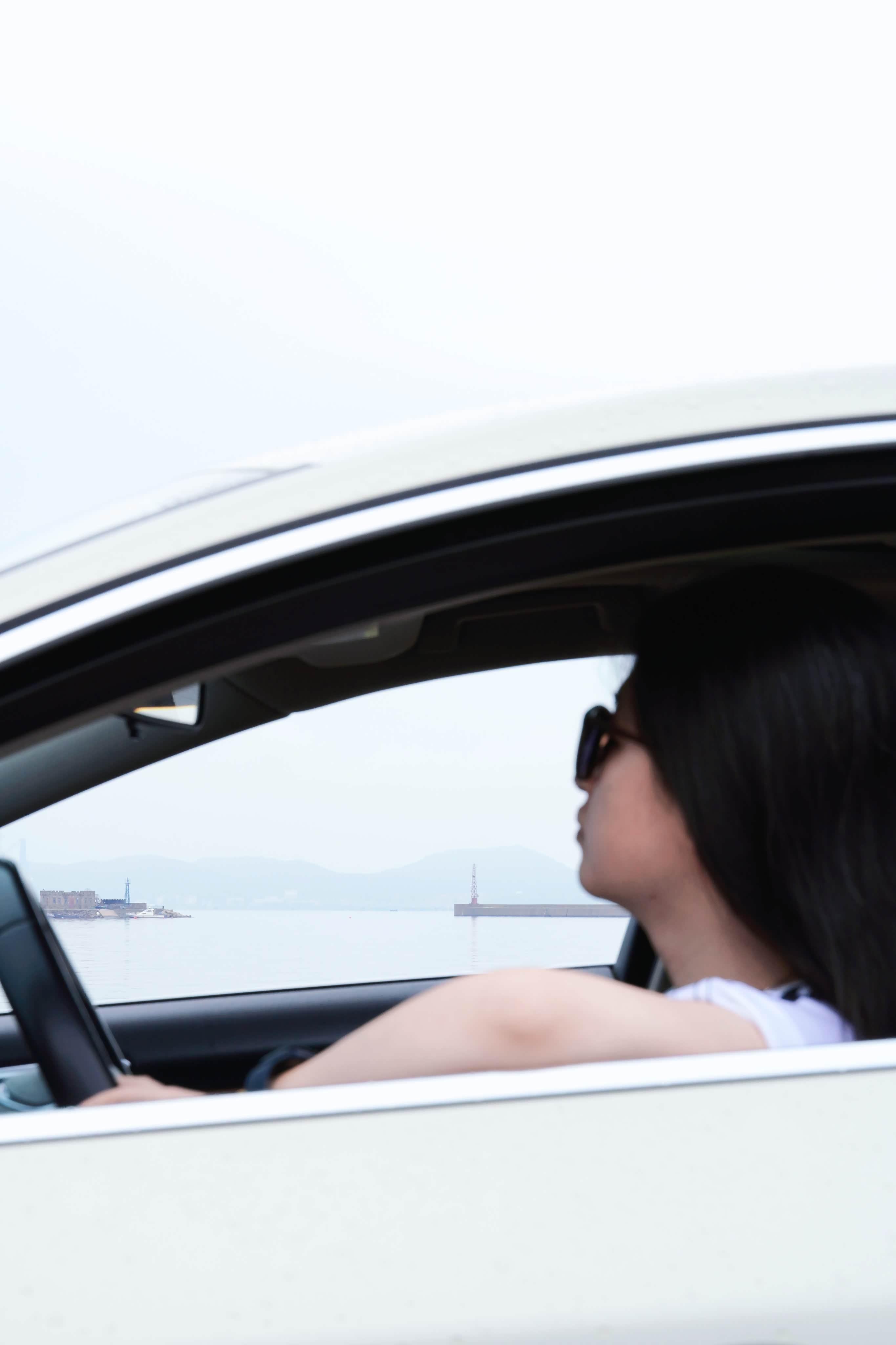 人车合影,最好的搭配就是让人与车产生互动关系,她坐在驾驶舱摆pose,剩下的就交给我来找角度完事。很多车友拍人车合影,我发现最严重的问题就是人是人、车是车,无法产生人车之间有什么关系的感觉。面对这个问题,这一组照片我创作理念就是尽可能模拟平时开车时候自然的pose用一些抓拍感画面来表达。
