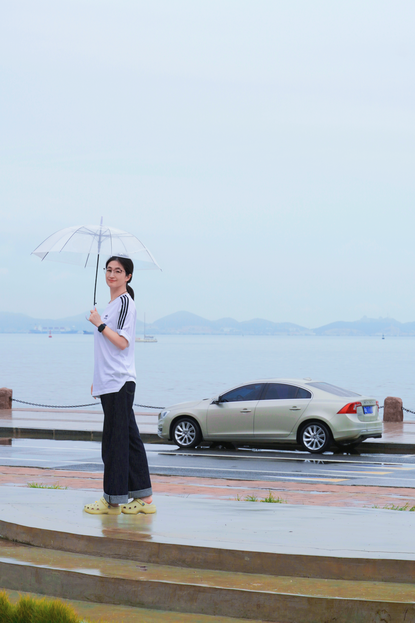 我甚至在虹口广场能把车停在沿海道路的车位上拍下这组各个社交平台的烟台网红红绿灯打卡点。由于下雨,她举着伞从车前路过,我还抓拍到了这一优雅的瞬间。