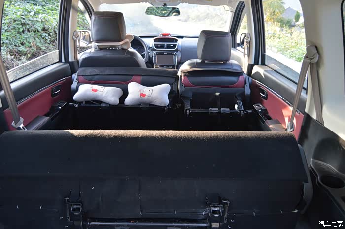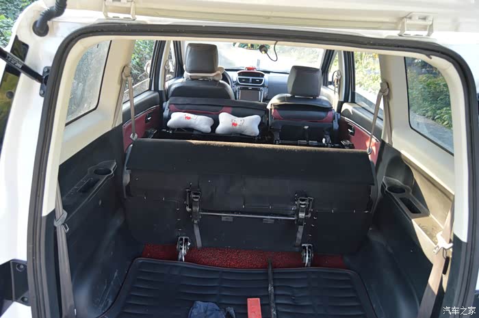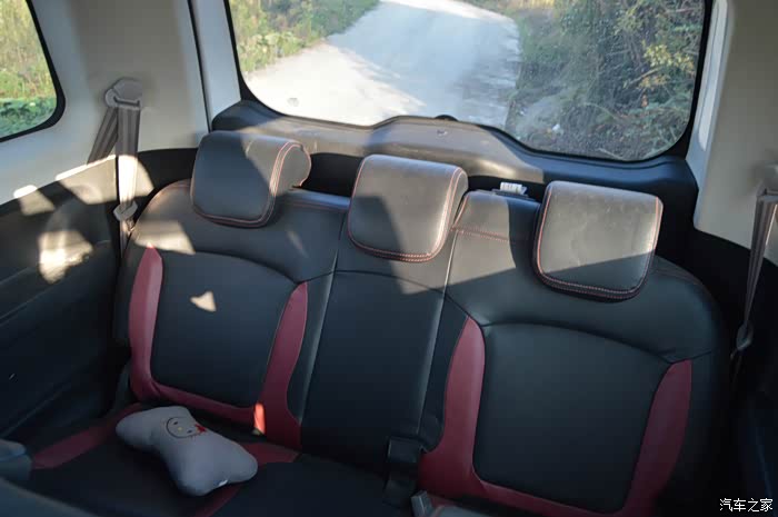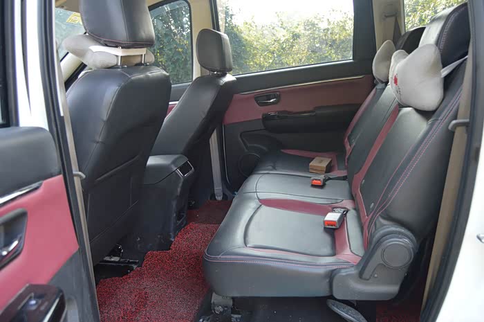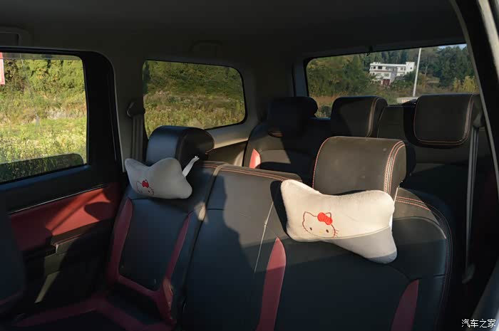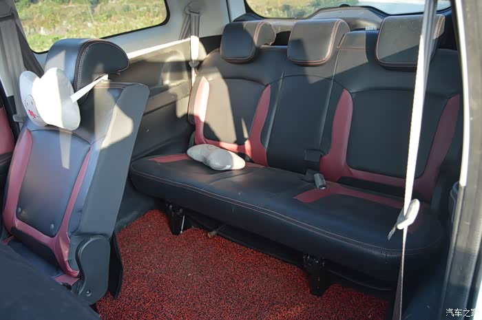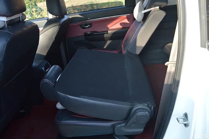 第三点,性能★★★★仿真皮黑红色搭配座椅有些偏硬但很舒适,看起来也比较高档。空间灵活度相对高,第二排座椅可折叠,第三排座椅可放平可折叠。有利于装载较多的货物及行李,车辆噪音在能接受范围,隔音效果有待加强。避震效果还不错,至少比起某菱x光是要好很多的。