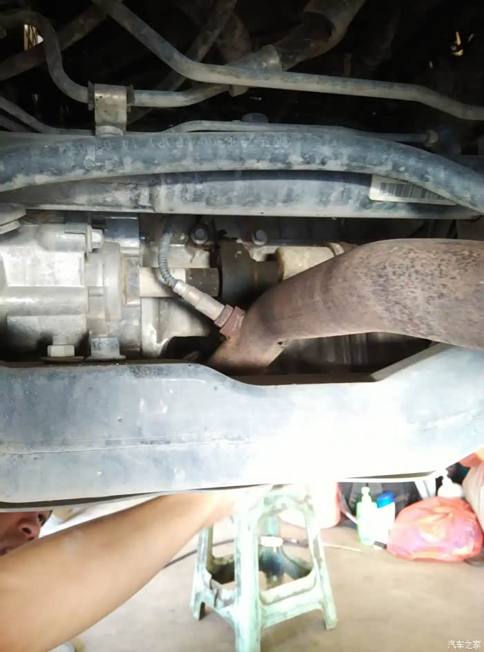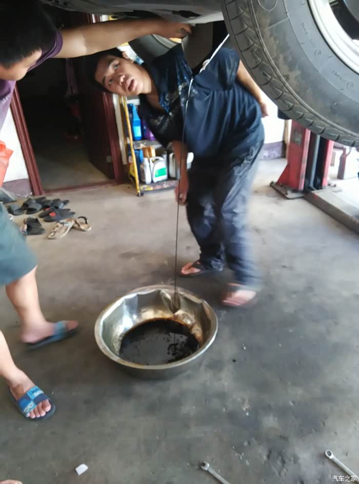 放干净油,师傅在下面,徒弟在上面用气吹机油口,让剩余的油排干净。