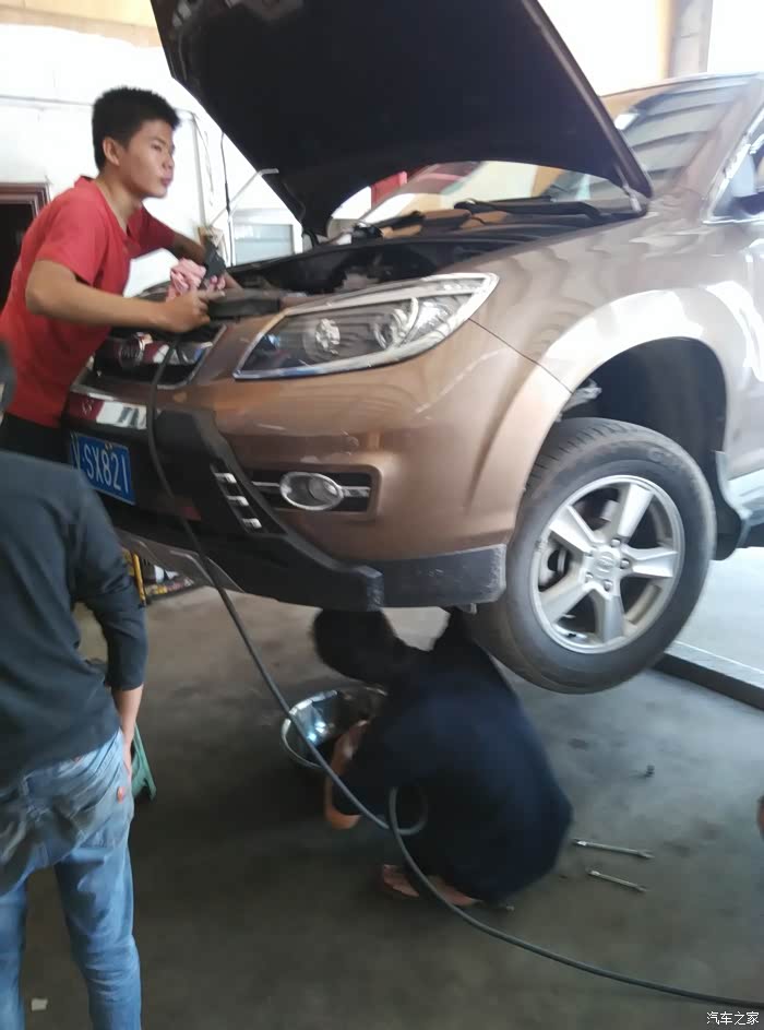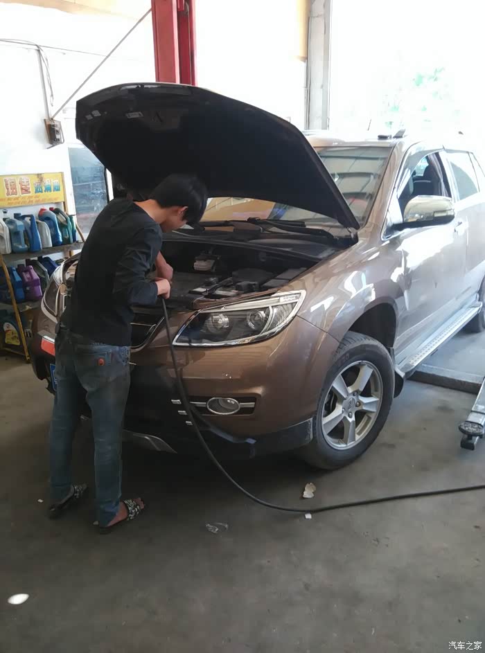 小师傅拿气吹把发动机舱的灰尘吹掉,还是挺认真的。