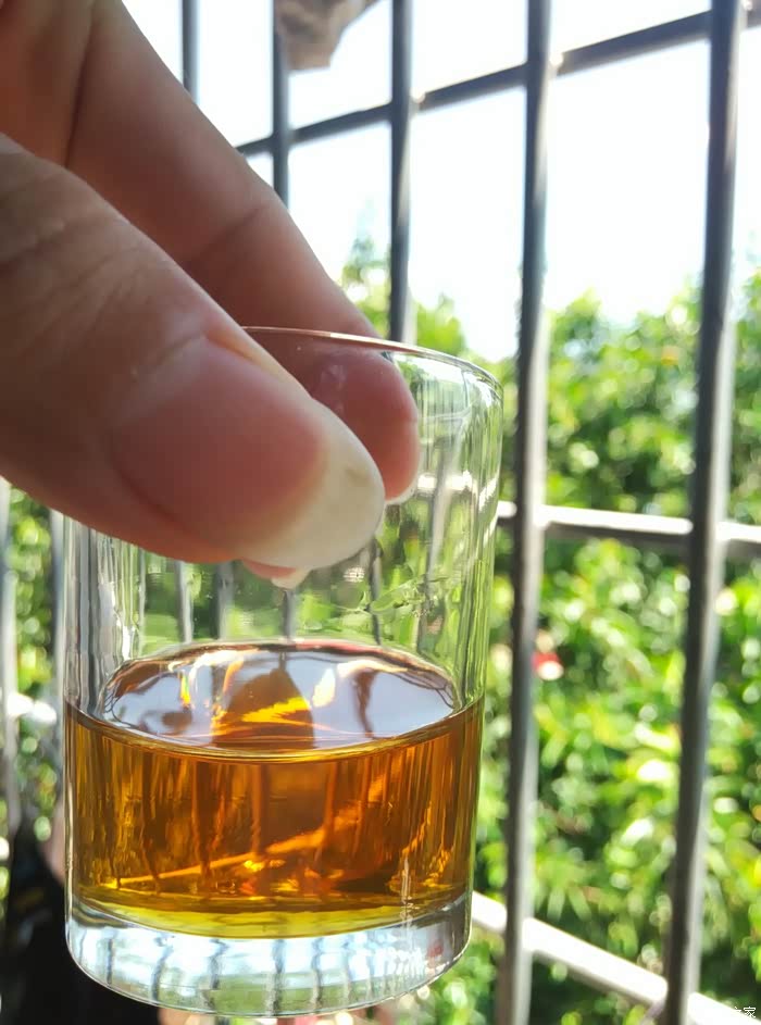机油样品,闻了下气味,不香也不臭,也不会有刺激性气味。有一股淡淡的油味,大伙说对不?灰壳SL530的
