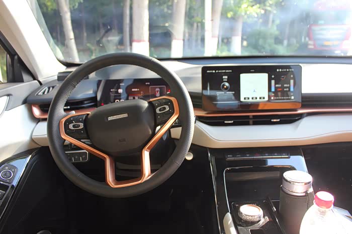 方向盘没有采用D字型设计,方向盘上有和内饰同色的装饰。