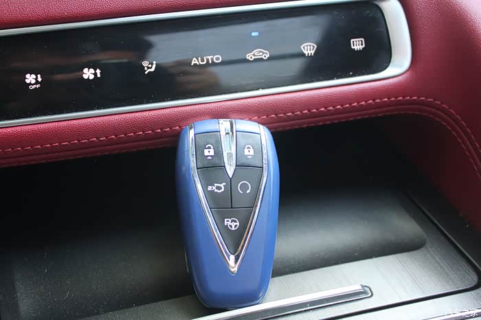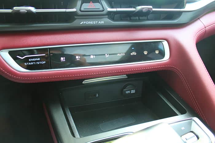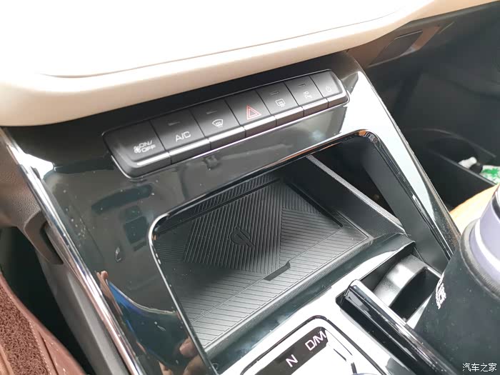 旋钮前面是无线充电位置,拿取手机很方便,上面是空调和一些功能的快捷键。