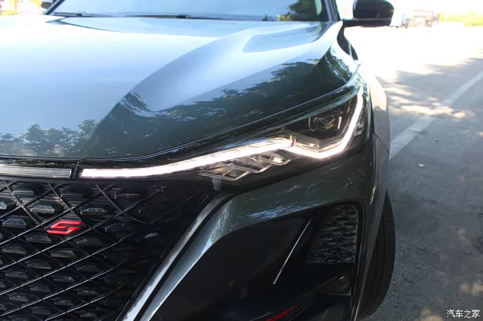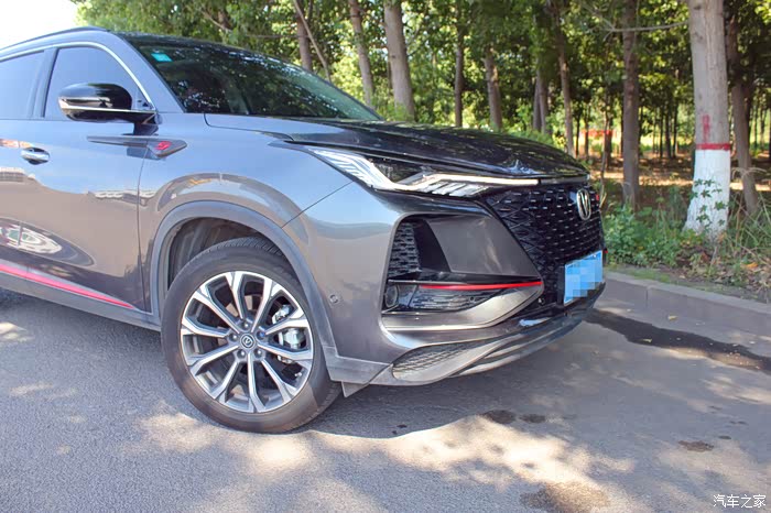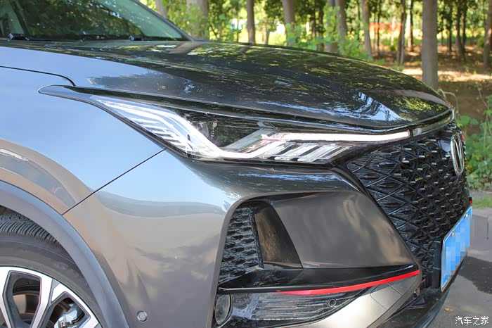 长安CS75plus的造型很时尚,设计方面有些激进,特别是大灯造型、雾灯网以及红色的装饰都很吸引人。