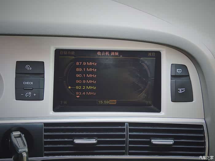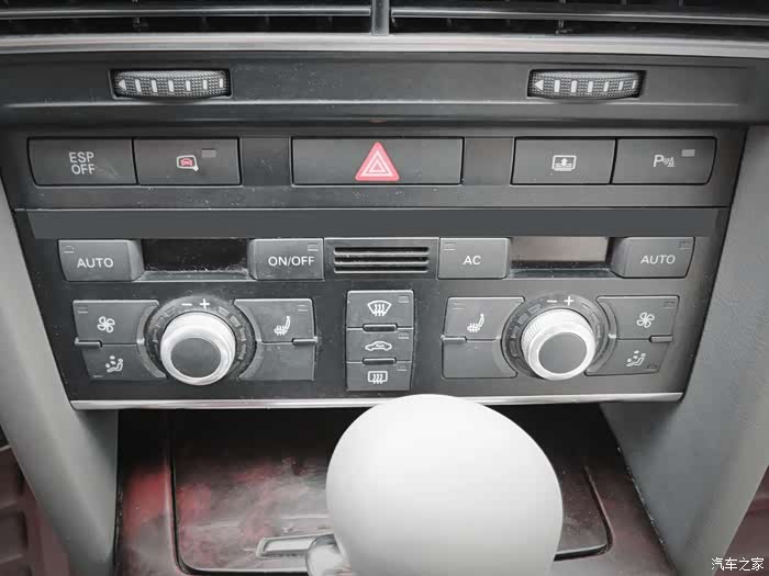 空调控制面板旋钮一角空白的按键看起来有些突兀,感觉像为座椅通风预留的,作为当年落地接近70万顶配的A6L,座椅只有加热没有通风有些遗憾。空调控制面板上方,除了ESP的关闭按键,还能看到并线辅助的开关,这个配置在15万以内的新车上也比较少见。