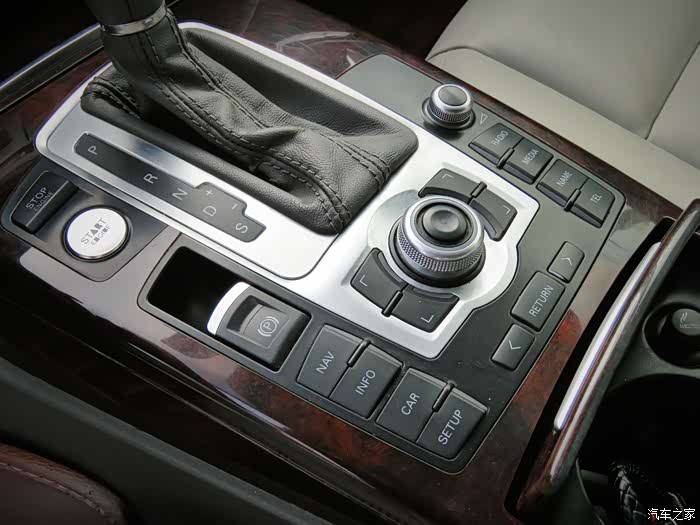 前排地台上绝大多数区域都被MMI系统的控制按键占领了,在今年广州车展上刚发布的C8代A6L已经通过两块大号的触摸屏取代了这些按键。不过这位同学表示他还是更喜欢这种通过实体按键控制车机的操作方式,除了在行车过程中操作起来比触摸屏方便一些外,夜间背光灯点亮后,看起来有种飞机驾驶舱的感觉也是很个性的一点。