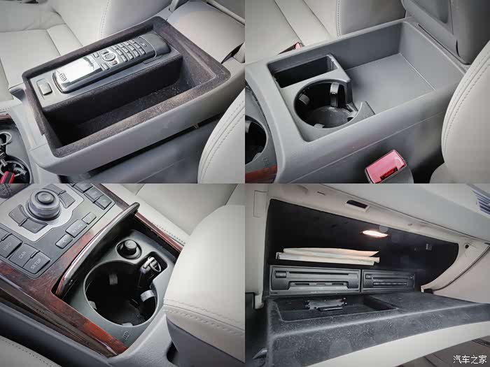 前排扶手箱里的车载电话和手套箱里的CD级,现在看到它们只想说一句话“拿走拿走别客气”...只要个蓝牙媒体源就可以了。这台车的杯架设计的有点奇葩,有一个被放到了扶手箱下层,由于门板上也不能放水,所以在出现两瓶水的时候,只能放弃使用中央扶手了。