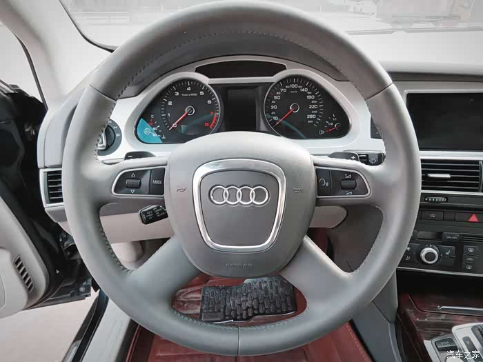 要是拿这台A6L的内饰去和现在市面上的车作比较,内饰自然是有些老旧了,不过与年份相近的车相比还是很不错的。这位同学说这代A6L的内饰给它留下印象最深的点就是和同门旗舰SUV Q7的内饰高度一致,这套内饰放在十多年前这代A6刚上市的时候绝对属于非常前卫的那一类了。
