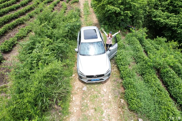 经过热心的茶农同意,驾轻就熟的把沃尔沃XC60切换成越野模式,行驶在这狭窄而又碎石坑洼的路面,沃尔沃XC60这套前双叉臂独立悬架加后多连杆独立悬架的组合让路面反馈更清晰,也给我带来更多越野的乐趣。
