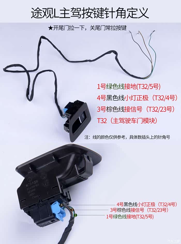 途观L原厂电动尾门(带主驾驶按键+延时关闭)安装作业,教程参考