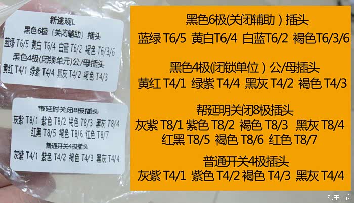 插头上面有针角定义提示,方便安装师傅插针角时对着颜色插~~