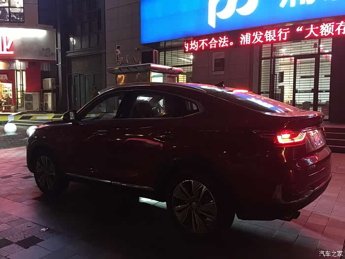 随手照得仓促,画面也很暗,但不影响喜欢上这个溜背,侧面看车身修长,屁股上翘带点小性感,比普通SUV那种给人的硬朗感要柔和好多。