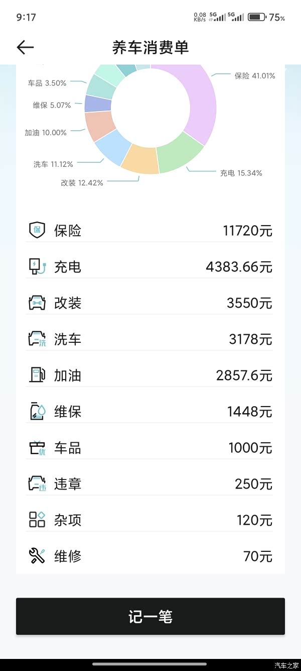 在车上花的钱还不算太多,大头就是电费油费保险费