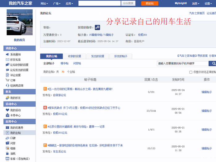 未来,我希望还能继续在汽车之家这个平台上,分享更多关于极氪001的故事。也希望能认识更多车友,一起聊聊车,一起出去自驾,感受不同的风景。