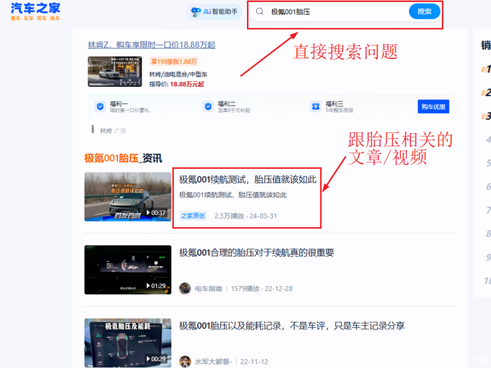 真正开上了,问题就一个接一个地来。电车的能耗怎么算啊?什么时候该给轮胎打气呀?这些问题把我搞得晕头转向。但这些问题,我统统在汽车之家找到了答案,直接在之家搜索相应的问题,就可以看到车友们的经验分享。