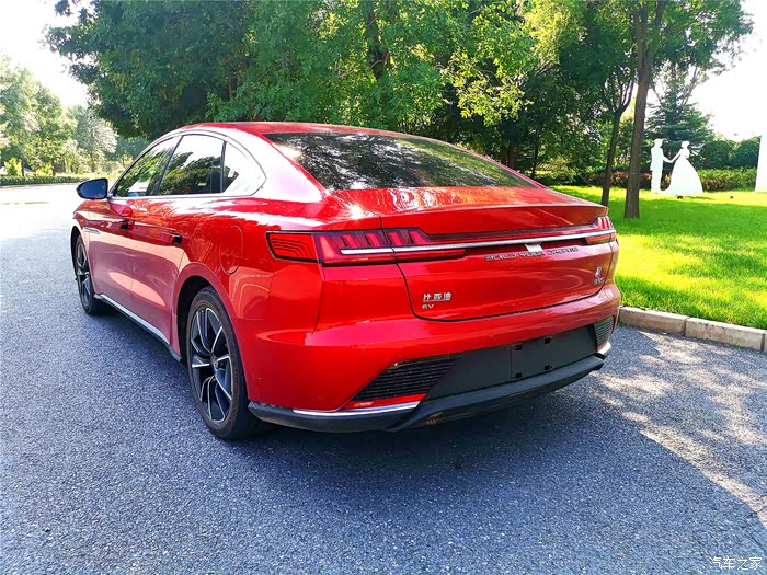 后45度,可以看出汉的完美的曲线,这也是能做到0.2333cd全球第三的风阻系数的一个印证。