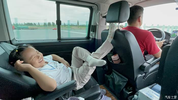 一大清早吃饱喝足后,从乌鲁木齐出发,就直奔独山子了,七座的车坐我们三个人就好似是在移动的家里。出行总是让人愉快的,小朋友在路上唱唱跳跳的,在爸爸后面还翘着二郎腿。(考虑到行车安全,也是及时提醒制止了的。)