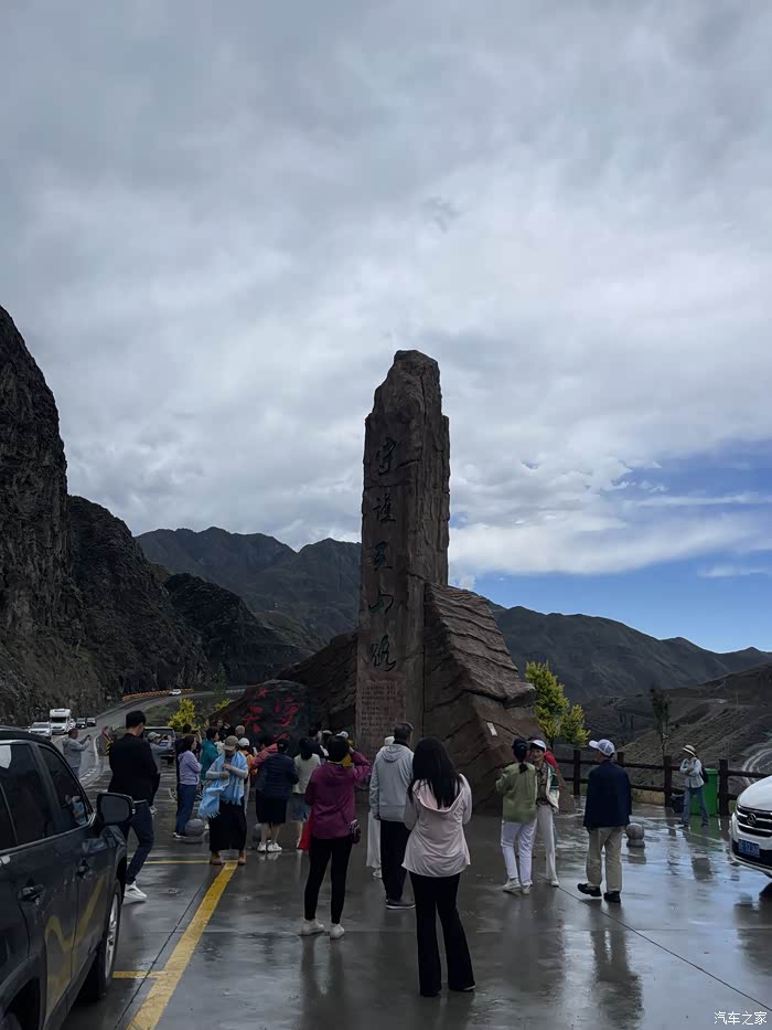 正式进入独库公路后,天反而放晴了,看到嶙峋的山体,公路就在其中蜿蜒曲折着,路与山成了相互成就的风景。很快就到了第一个大家会打卡拍照的地方,不出意外的前方就已经开始堵车了。此时下起了大雨,有点担心如果持续下雨,山顶下雪会不会交通管制。沿途看到骑行的人,带着轻量化装备,也真的很佩服他们。