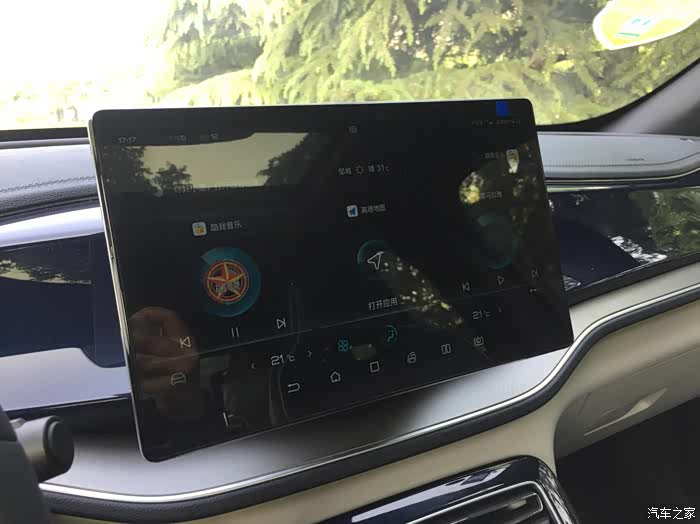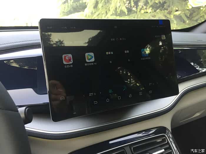 再来看看内饰,进入到车内,最吸引人的就是这块自适应旋转大屏了,这也比亚迪的一大特色,大屏里面的APP很丰富,也可以自行下载,感觉用起来和IPAD差不多,刚刚在大屏里玩了会游戏,也可以自己手动旋转大屏,方向盘上有个快捷键,按一下就好了,很轻松。