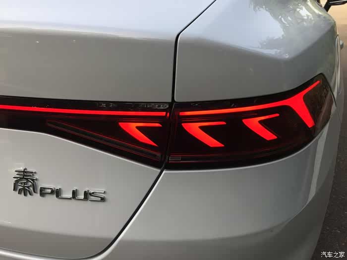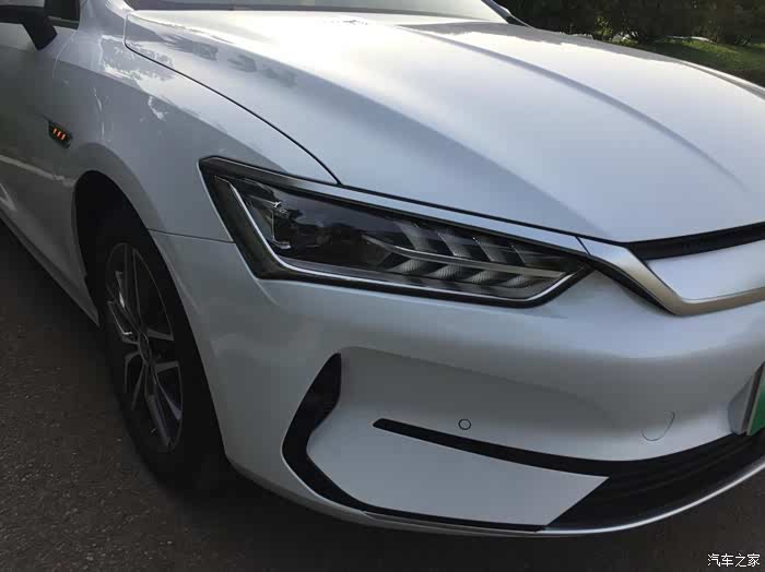 秦PLUS EV颜值非常在线,眼神锐利的大灯,整个边框用了镀铬包围,和中间那个宽宽大大的镀铬连接在一起,简洁有力,符合我和媳妇的审美。