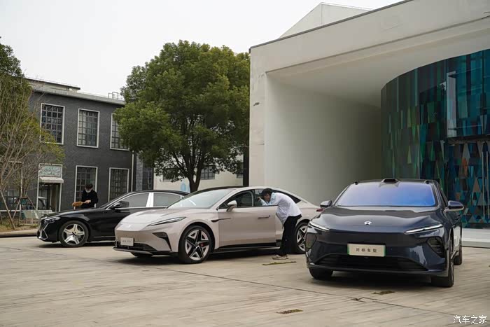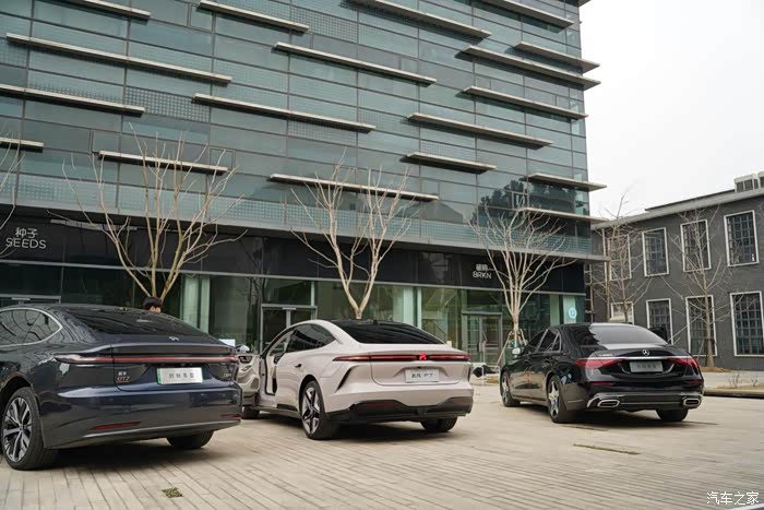 到达玻璃博物馆以后,最让我没想到的是今天飞凡不仅将F7摆出来了,居然还在边上放了一台奔驰s和蔚来ET7,这第一感觉就是飞凡F7的实力绝对有,但是多不多,还是要我自己去体验对比一下的。