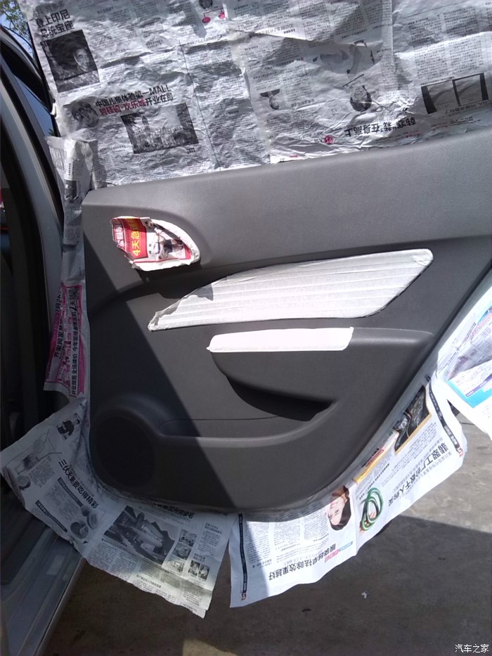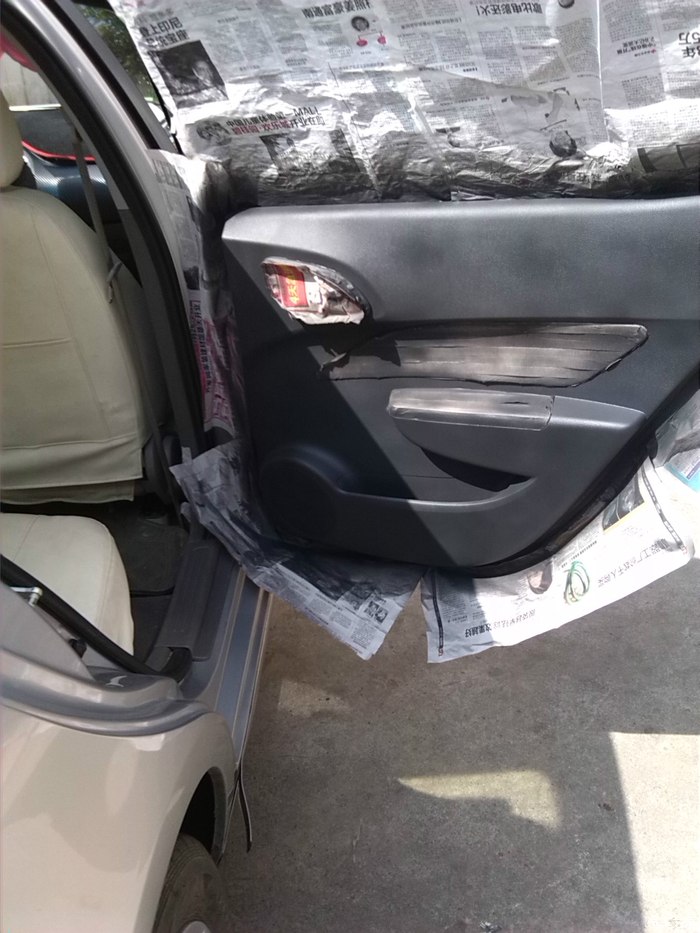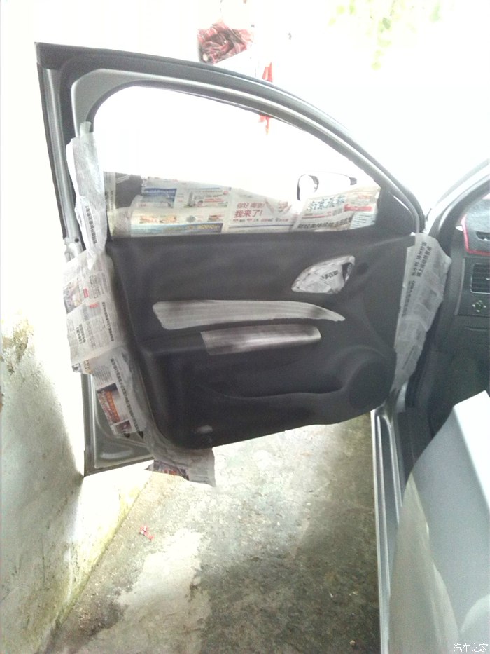 四周用报纸包裹好不要喷到门框上,上图已经喷了一层了!