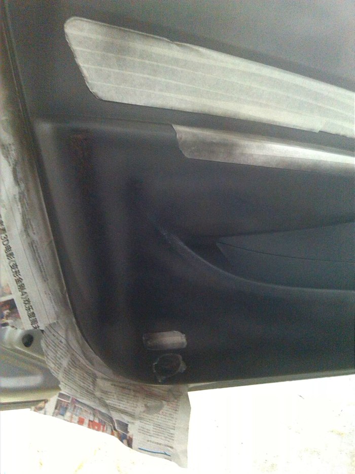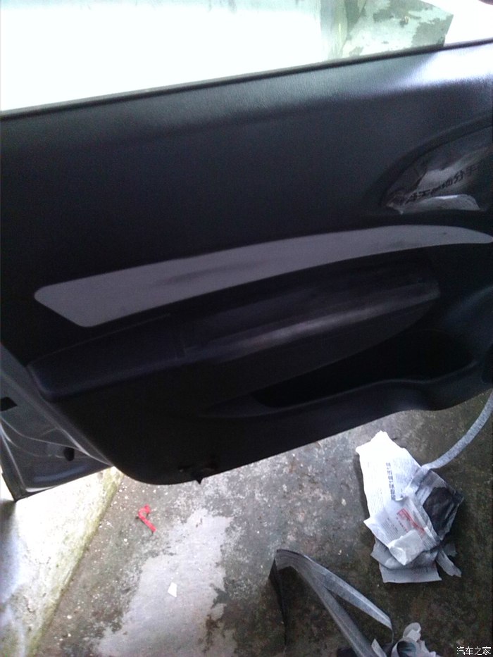 下面是新做的门,之前由于没时间一直拖到今天才做完主驾前门,天还在下雨,这里不推介大家雨天做,影响效果!