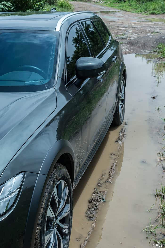 驶出泥坑的时候车屁股已经和路面呈45度角,