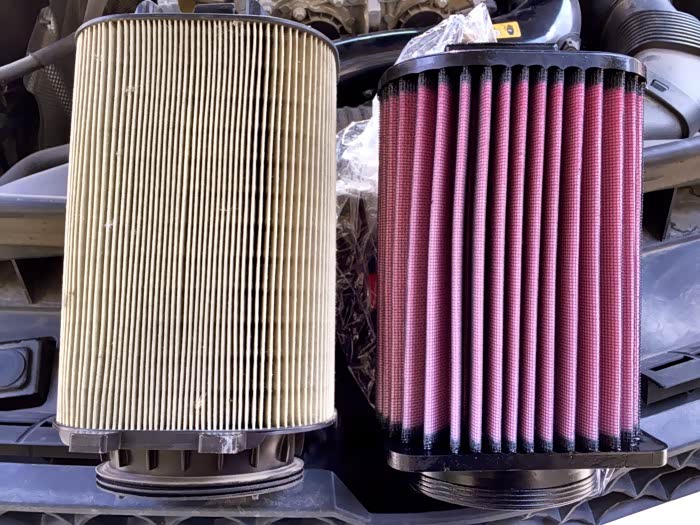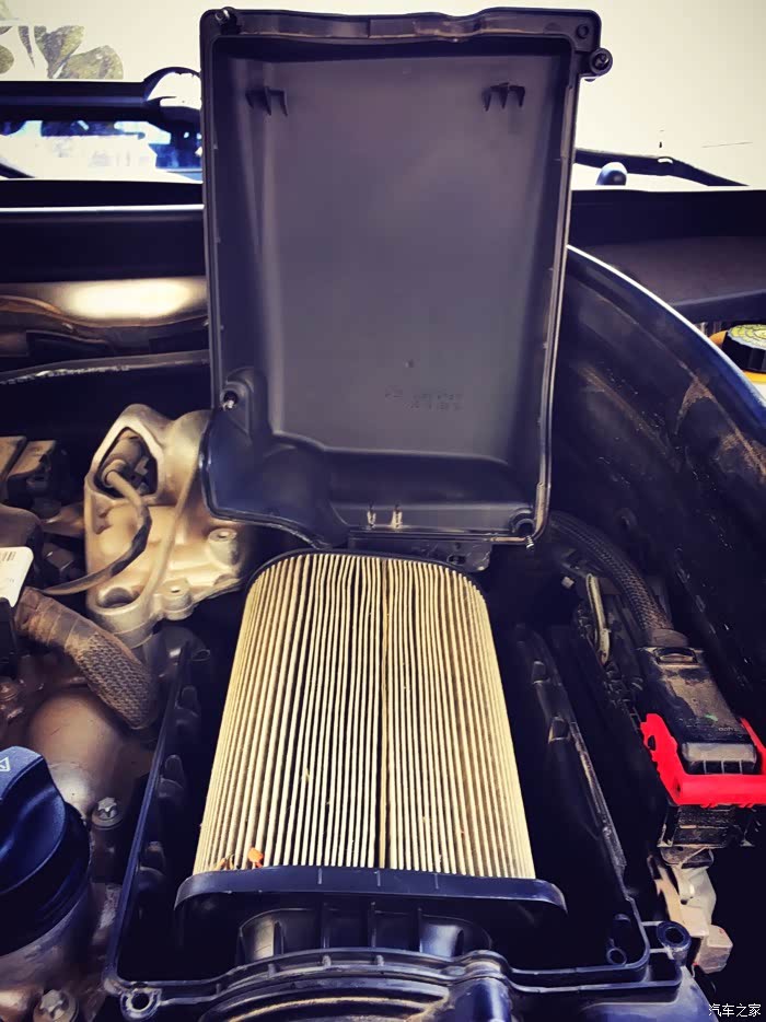 打开后空气滤芯后,双手向北推移可以方便取出,原厂的曼牌空滤确实可以使用10000公里