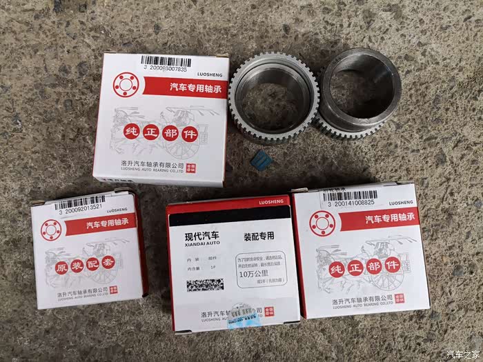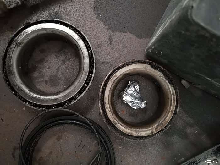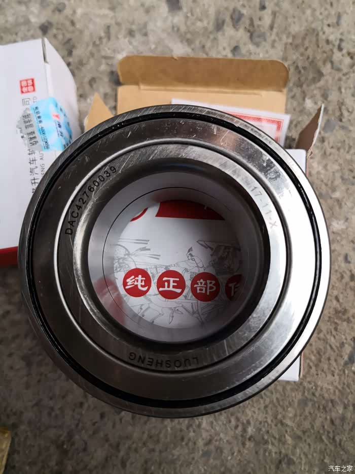 换下的原车轴承,连个型号也没。换上去的我也没看到。2017.11.1日4S换的左前轮轴承。