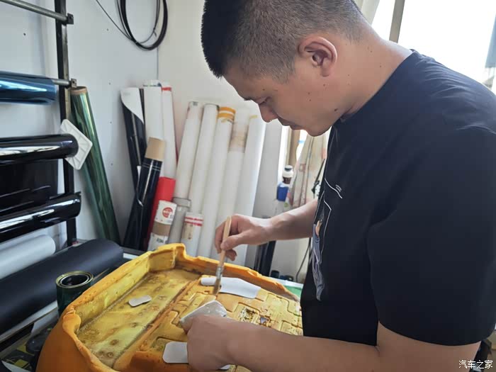 贴一下座椅两侧凸起的位置,这是贴完的效果!这个超纤皮革比较厚实,可以增加原车海绵的表面强度!