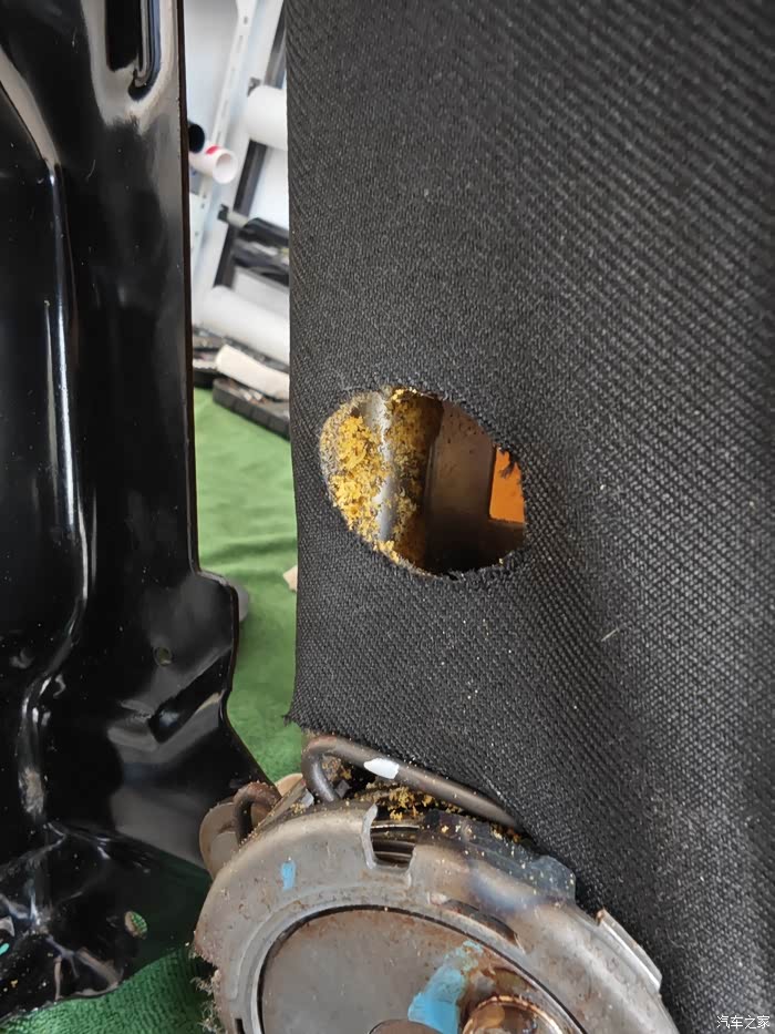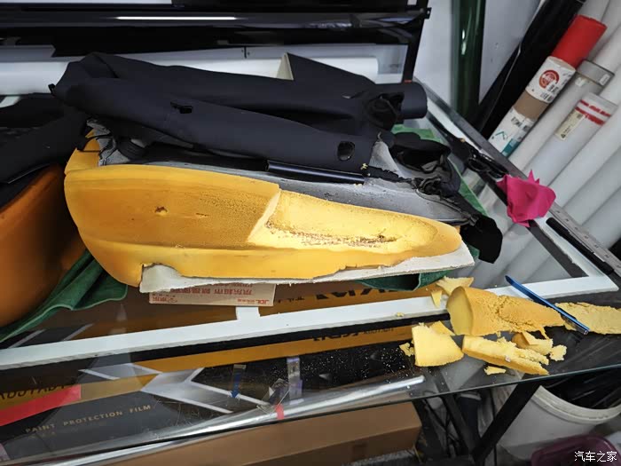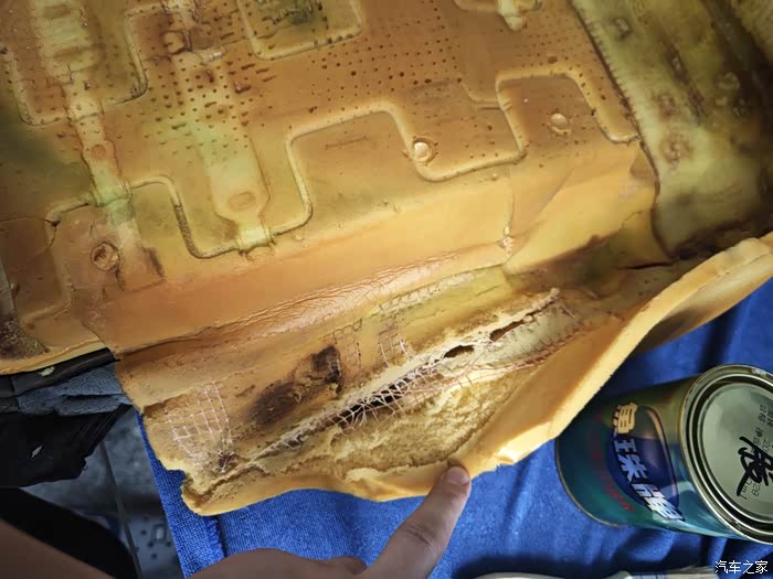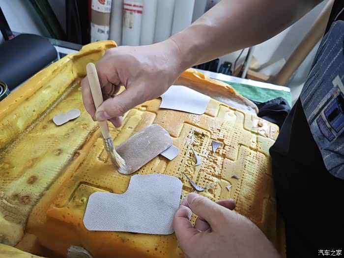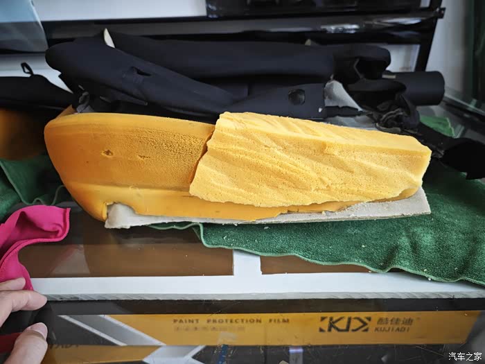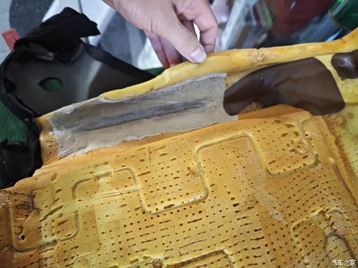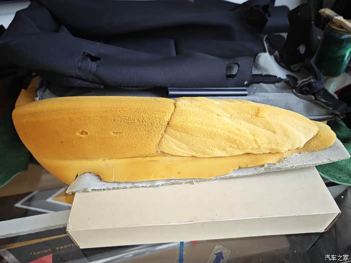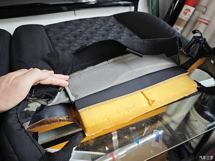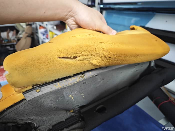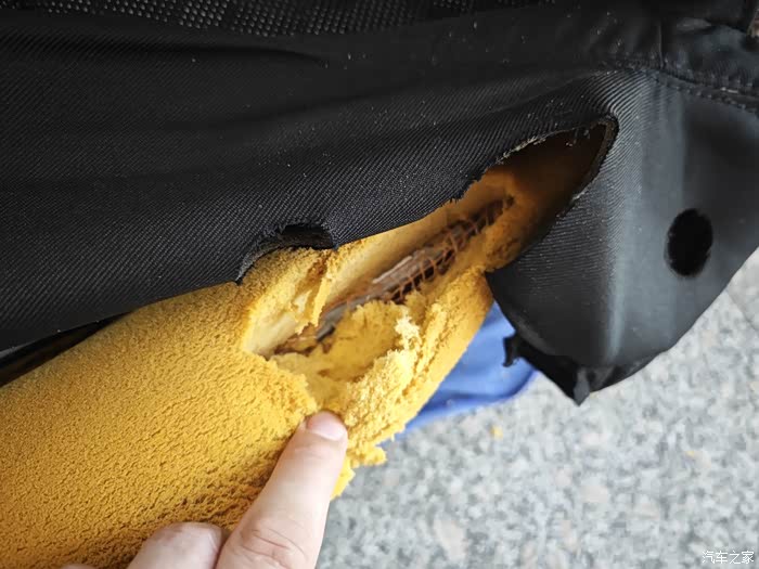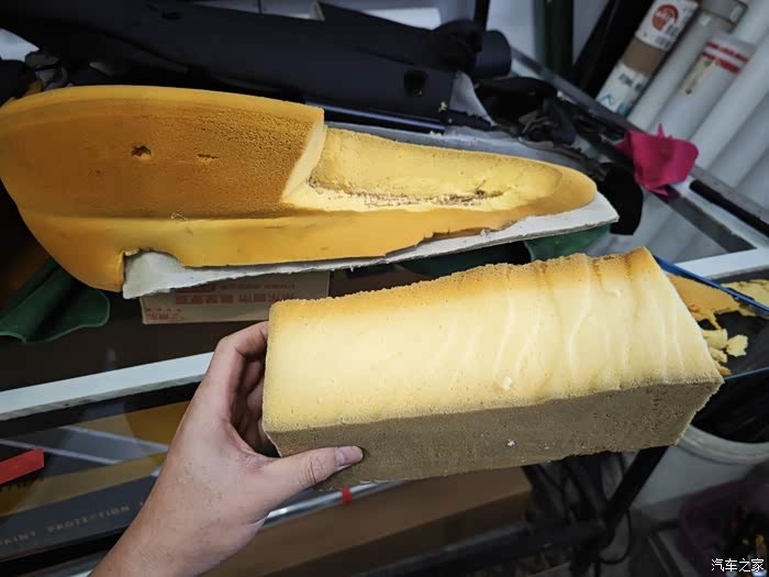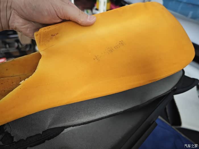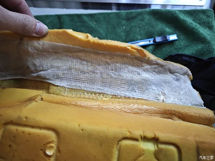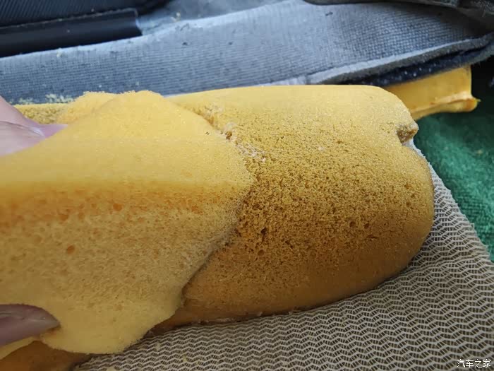 主驾驶海绵破损处 切掉!一直切到有弹性的没有破损的地方!