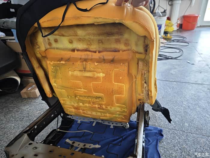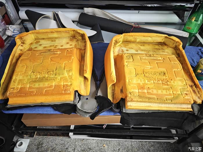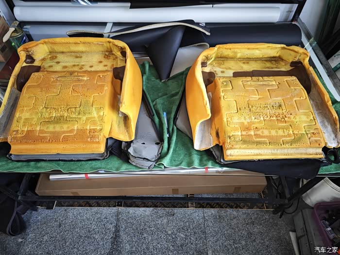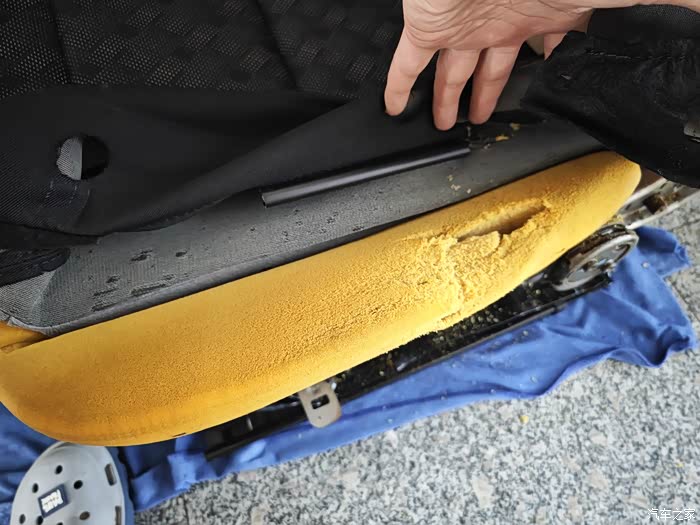 主要是两点!其一:把主驾驶塌陷位置更换海绵修复好 恢复弹性,其二:座椅太软 感觉底下弹簧不紧致,坐上去感觉掉坑里了!!其实只有主驾驶外边塌陷了,副驾驶也没事!既然拆了就一块把副驾驶一起拆了吧!!想办法增加强度!请看详细图片吧!