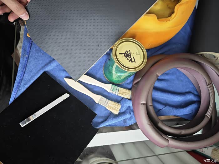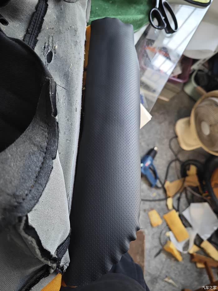 还剩一块超纤皮革 就塞进座套下边了 大小正合适!坐感相当好,更有韧性,没有之前软塌塌的感觉了!